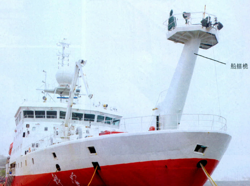 一眼望去,“科學(xué)”號(hào)船艏部向斜上方伸出的一個(gè)部件非常引人注目,它叫船艏桅,也被科學(xué)家們稱為“科學(xué)桅”。在艏桅上面,是海洋大氣和海氣通量的觀測(cè)平臺(tái)。海氣通量是指在單位時(shí)間內(nèi)、單位面積上,海洋和大氣之間發(fā)生的物質(zhì)(水汽、二氧化碳等)及能量交換的量。海氣通量平臺(tái)是測(cè)量垂直方向上數(shù)據(jù)的觀測(cè)設(shè)備,它的換能器和水面的距離不能低于15米。這個(gè)平臺(tái)之所以設(shè)計(jì)在船的艏部并做成向斜上方傾斜的形式,主要是因?yàn)檫@個(gè)位置對(duì)海洋大氣和海氣通量觀測(cè)的干擾和影響最小。通過這個(gè)平臺(tái),科學(xué)家們可以向船艏下方放置換能器,實(shí)時(shí)測(cè)量海洋和大氣之間物質(zhì)、能量交換的參數(shù)。