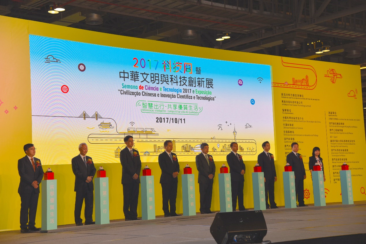10月11日上午,在國家科學(xué)技術(shù)部支持下,由澳門科技委員會主辦、科學(xué)技術(shù)發(fā)展基金承辦的“2017科技周暨中華文明科技創(chuàng)新展”在澳門金光會展隆重開幕。澳門特別行政區(qū)政府運(yùn)輸工務(wù)司司長羅立文、中央人民政府駐澳門特別行政區(qū)聯(lián)絡(luò)辦公室黃華蓋副秘書長、科學(xué)技術(shù)部苗少波副秘書長等出席開幕式。