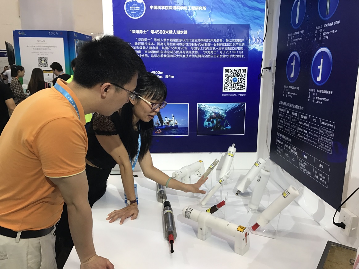 由三亞市人民政府、三亞市科技工業(yè)信息化局、三亞市商務(wù)會展局、三亞市科技工業(yè)發(fā)展委員會主辦,STATA三亞加速承辦的以“感知·合作·未來”為主題的三亞科技成果亮相海創(chuàng)會,該展區(qū)包含了“新興產(chǎn)業(yè)發(fā)展規(guī)劃”、“海陸空科技”、“國際高新技術(shù)產(chǎn)業(yè)”三大板塊,中國科學(xué)院深海科學(xué)與工程研究所作為海洋領(lǐng)域代表受邀參加三亞科技成果展。展出內(nèi)容有“深海勇士”號模型,“深海勇士”號研制及海試紀(jì)錄片,溫度傳感器、溫深傳感器、感應(yīng)耦合溫深傳感器等海洋觀測傳感器,獲得了參展嘉賓的極大興趣和關(guān)注。
