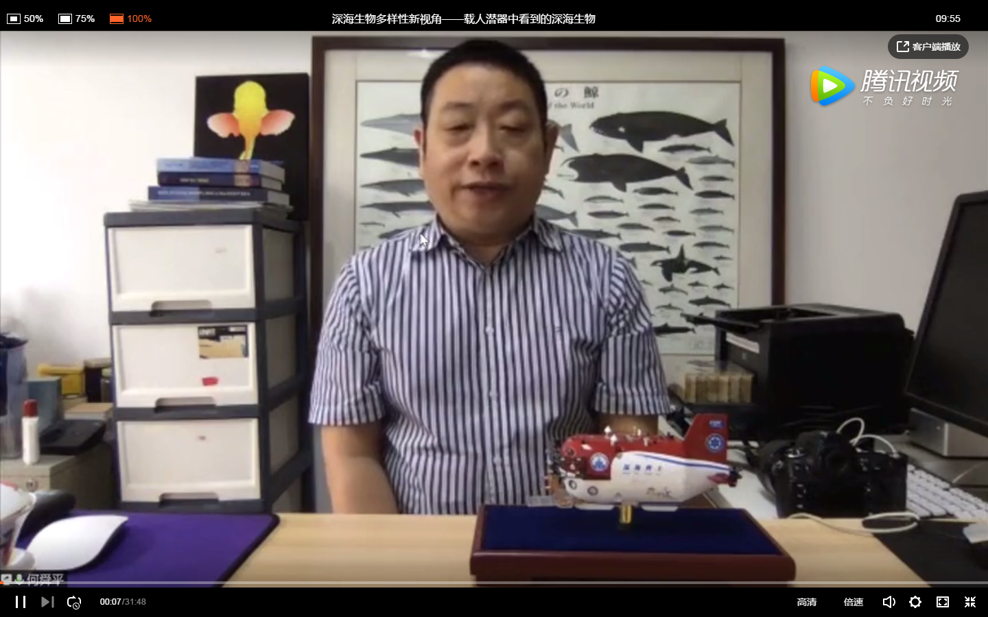 深海所通過今日頭條和抖音在線直播了我國4500米級載人潛水器“深海勇士”號以及鯨豚標(biāo)本館,為公眾奉上了一場深海科學(xué)盛宴,為豐富活動形式,與觀眾互動,還增加了直播間有獎問答環(huán)節(jié),總訪問量高達12.9萬;同時,生物學(xué)研究室的何舜平研究員為大家準備了科學(xué)公開課《深海生物多樣性新視角——載人潛器中看到的深海生物》,播放次數(shù)達1382;深海所全景AR滿足了公眾足不出戶就可以參觀深海所的愿望,點擊量達6142。
