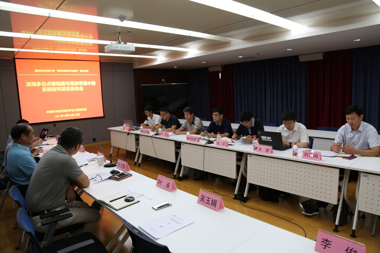 2017年10月26日,中國科學院深??茖W與工程研究所在三亞組織召開了國家重點研發計劃“深海關鍵技術與裝備”重點專項“深海多位點著陸器與漫游者潛水器系統研究”項目啟動會。項目責任專家、項目參研單位代表共計20人參加了會議。