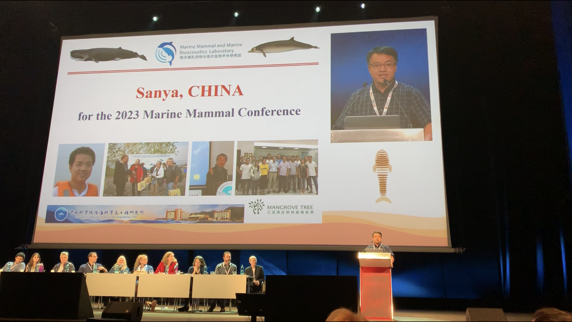 12月10日晚,李松海研究員在大會主會場為申請三亞作為2023年世界海洋哺乳動物雙年會主辦地進行了口頭報告,介紹了三亞獨特的地理位置、承辦會議條件及南海獨特的鯨類資源分布情況。本次競爭主辦權的城市還包括新加坡和澳大利亞珀斯