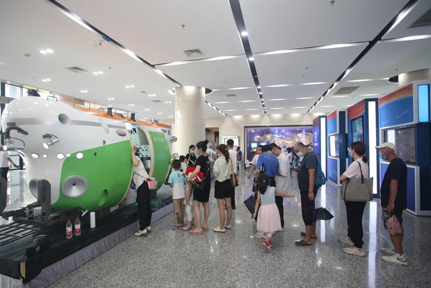 “奮斗者”號模型前排隊(duì)等候打卡的市民游客