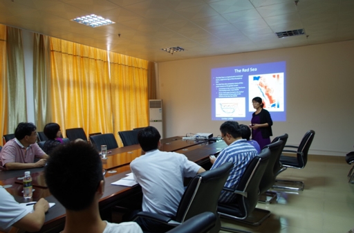 報告中,翟平博士介紹了她的工作內容,包括基于CFCs和SF6示蹤物的區(qū)域海洋環(huán)流反演研究,紅海環(huán)流的數(shù)值模擬以及CFCs和SF6示蹤物的測量等。我所科研人員就紅海海底有無鹽池,研究紅海區(qū)域的意義以及示蹤物取樣等問題與翟平博士進行了深入交流。