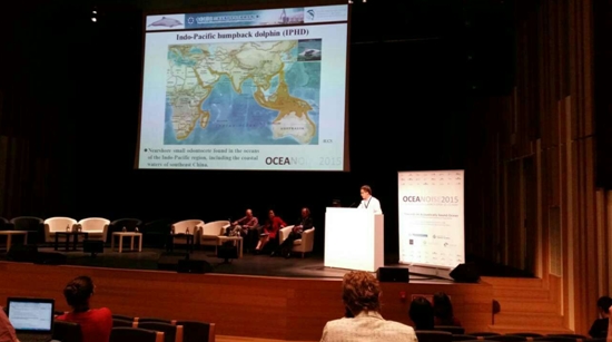 會議期間,李松海作為來自中國大陸地區的唯一代表,作了題為“小型快艇的中高頻噪聲特征及其對中華白海豚的潛在影響(Mid- and high-frequency noises of small fast-speed boats in shallow water and their potential impacts on the Indo-Pacific humpbacked dolphins (Sousa chinensis)”的會議邀請報告,并同國際上海洋聲學專家就海洋噪聲及其對海洋生物影響等相關問題進行了學術交流討論。