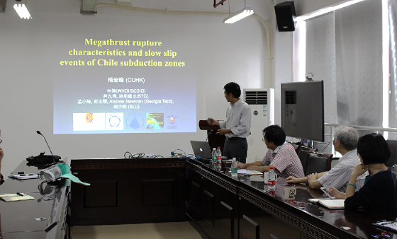 ????17日下午,應深海科學部吳時國研究員、田麗艷副研究員的邀請,香港中文大學理學院地球系統助理教授楊宏峰博士到我所進行學術交流訪問,并作了題為“Megathrust rupture characteristics and slow slip events of Chile subduction zones”的學術報告。