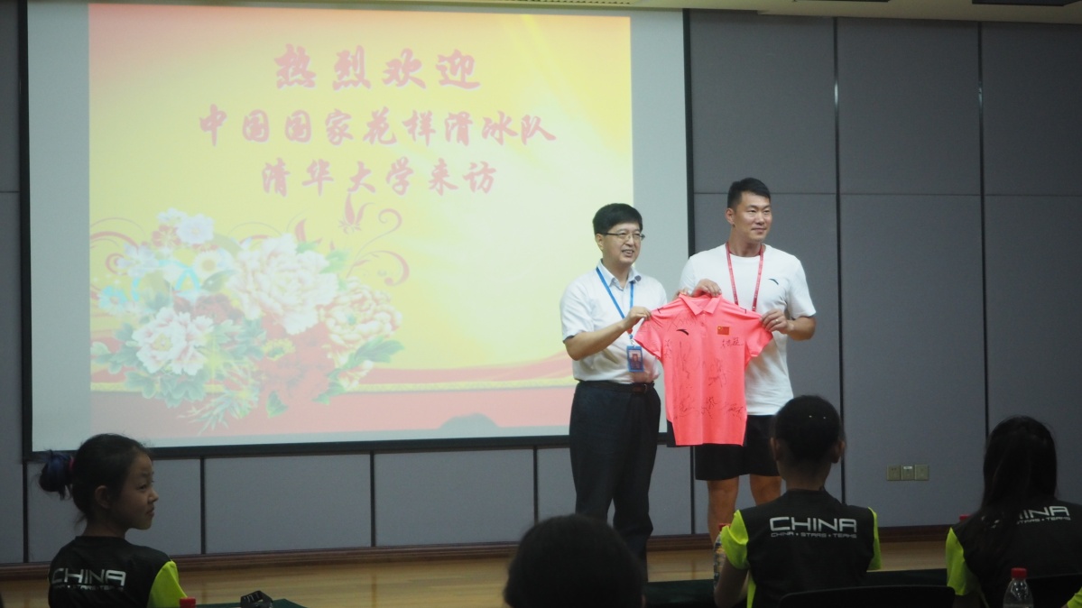 代亮(左)代表深海所接收國家隊(duì)贈予的簽名紀(jì)念衫