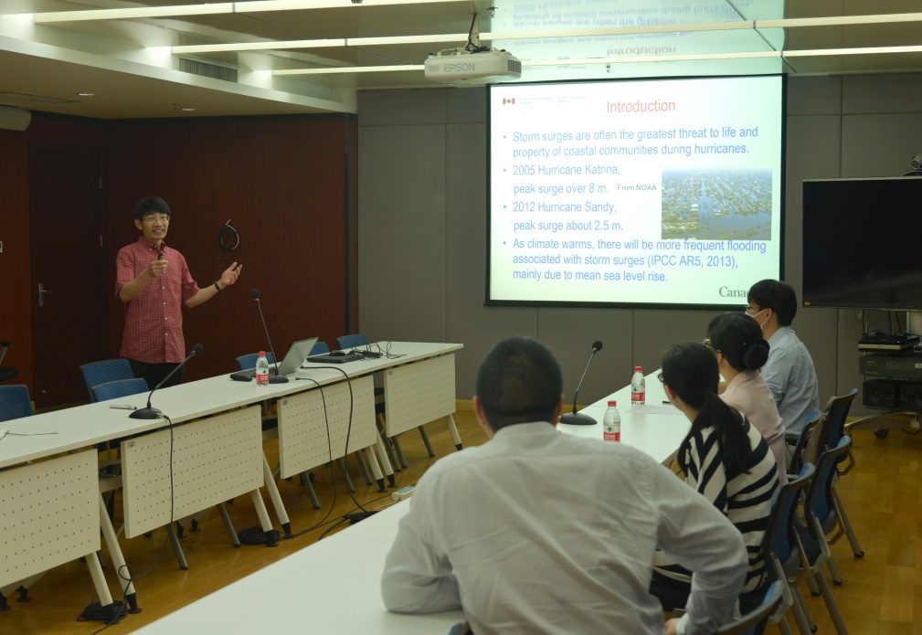 126日至7日,應海洋環流觀測與數值模擬研究室邀請,加拿大漁業與海洋部韓國其教授訪問中科院深海所,就風暴潮監測、海岸帶數值模擬等問題與科研人員進行交流,并做了題為“Using satellite  altimetry  to enhance  monitoring  and  simulation  of  storm  surges”的學術報告。