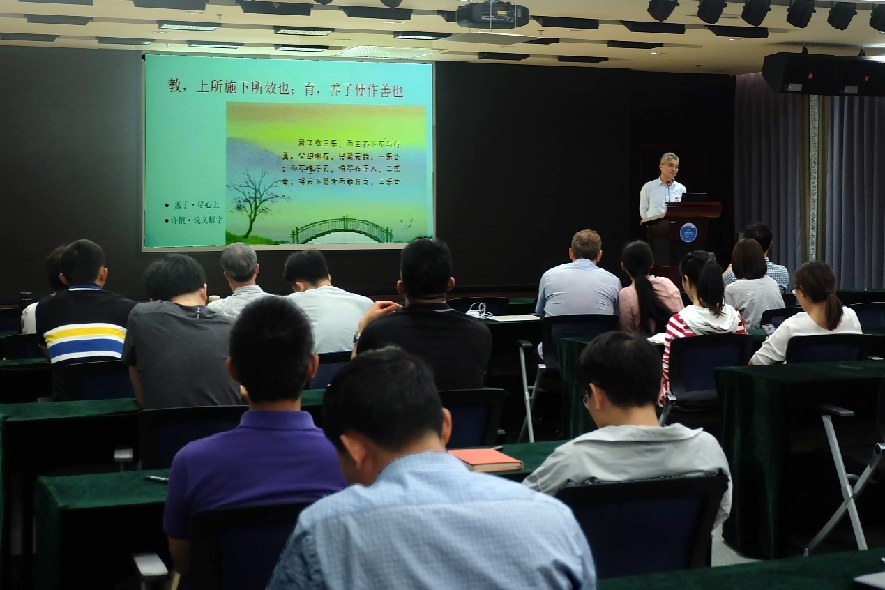 上午題為《師者仁,德為先》的報告主要面向全體研究生導(dǎo)師。馬石莊教授從 “大道至簡、德育為先、師者仁也”三方面,圍繞新時代教師如何“傳道、授業(yè)、釋惑”探討了導(dǎo)師應(yīng)具備的職業(yè)道德規(guī)范、標(biāo)準(zhǔn)。馬石莊教授列舉多個鮮活生動的事例,探討了“如何做有仁愛之心的好老師”、“如何做黨和人民滿意的教師”等熱點話題。馬石莊教授還介紹了中西方古代、近代和當(dāng)代的哲學(xué)家、教育家和科學(xué)家對教育的理念及認(rèn)知,并結(jié)合中國科學(xué)院大學(xué)研究生的特點,用鮮活生動的案例和幽默詼諧的語言,分享了自己的經(jīng)歷、經(jīng)驗和觀點,引發(fā)了導(dǎo)師們和在場聆聽職工的共鳴和思考。