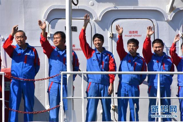 10月16日,參加第三次萬米深淵綜合科考任務的隊員向歡迎人群揮手致意 新華社記者 劉鄧 攝