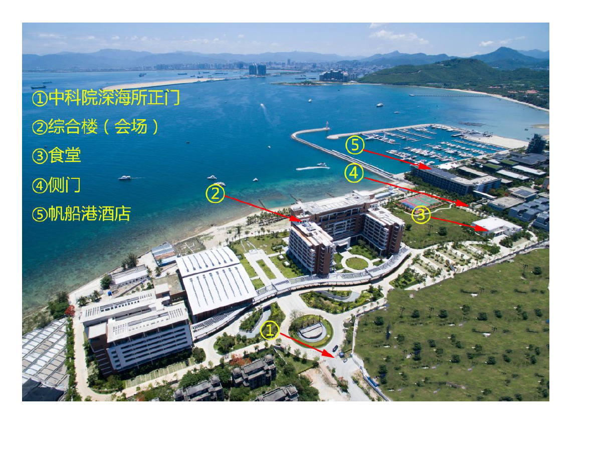 A courtesy shuttle bus will be operated between Luhuitou State Guesthouse and Institute of Deep-Sea Science and Engineering. The range of driving takes about 10 minutes. The details will be notified later.