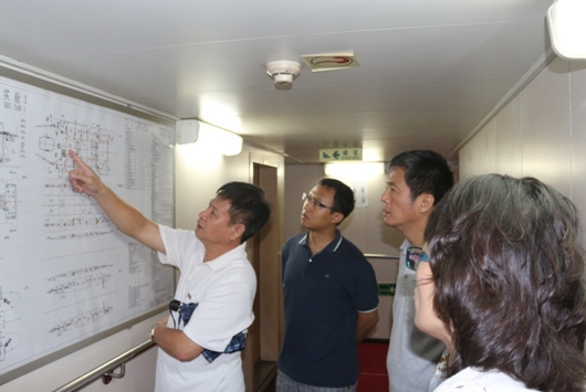 南海海洋研究所船舶處處長(zhǎng)蔡小陽(yáng)和“實(shí)驗(yàn)1”號(hào)船長(zhǎng)向三亞深海所科研人員詳細(xì)介紹了“實(shí)驗(yàn)1”號(hào)的船舶結(jié)構(gòu)、建造過(guò)程、船載儀器設(shè)備以及各項(xiàng)參數(shù)性能。同時(shí),大家針對(duì)船舶動(dòng)力系統(tǒng)、減震降噪功能和綜合科學(xué)考察能力提出問(wèn)題,進(jìn)行了詳細(xì)咨詢了解。