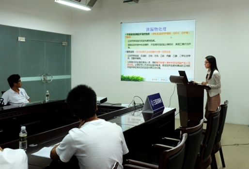 鄭麗平結(jié)合在實(shí)驗(yàn)室工作的特殊性,就一般安全規(guī)則,危險(xiǎn)品的正規(guī)操作過程,遇到危險(xiǎn)的緊急處理和用電、廢品處理等事項(xiàng)給大家進(jìn)行了介紹。她告訴大家研究是對(duì)科學(xué)的探索,因此很多未知的東西需要在實(shí)驗(yàn)室里研究和證明,發(fā)生出乎意料的問題也是難免的,但這些風(fēng)險(xiǎn)都可以通過安全操作降到最低,重視安全,就會(huì)避免危險(xiǎn)事故的發(fā)生。