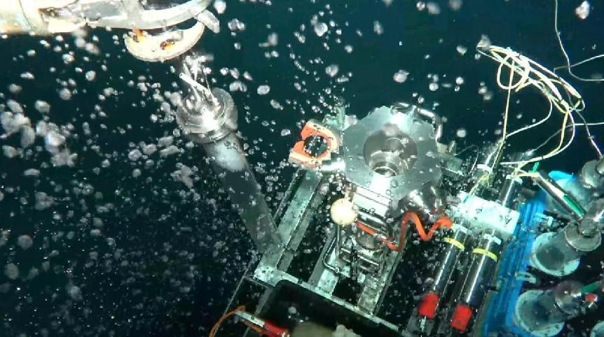 該航次在完成深海原位實(shí)驗(yàn)室海試任務(wù)的同時(shí),通過(guò)“深海勇士”號(hào)在南海冷泉區(qū)開(kāi)展了冷泉流體滲漏的生態(tài)環(huán)境效應(yīng)科考,獲取了“海馬”冷泉區(qū)以及其東北方向新發(fā)現(xiàn)的2處活動(dòng)冷泉區(qū)一批重要的流體、沉積物和生物樣本,并通過(guò)深海原位實(shí)驗(yàn)室對(duì)其中的一處滲漏口進(jìn)行了流體組分、微生物群落等的72小時(shí)原位觀測(cè)。