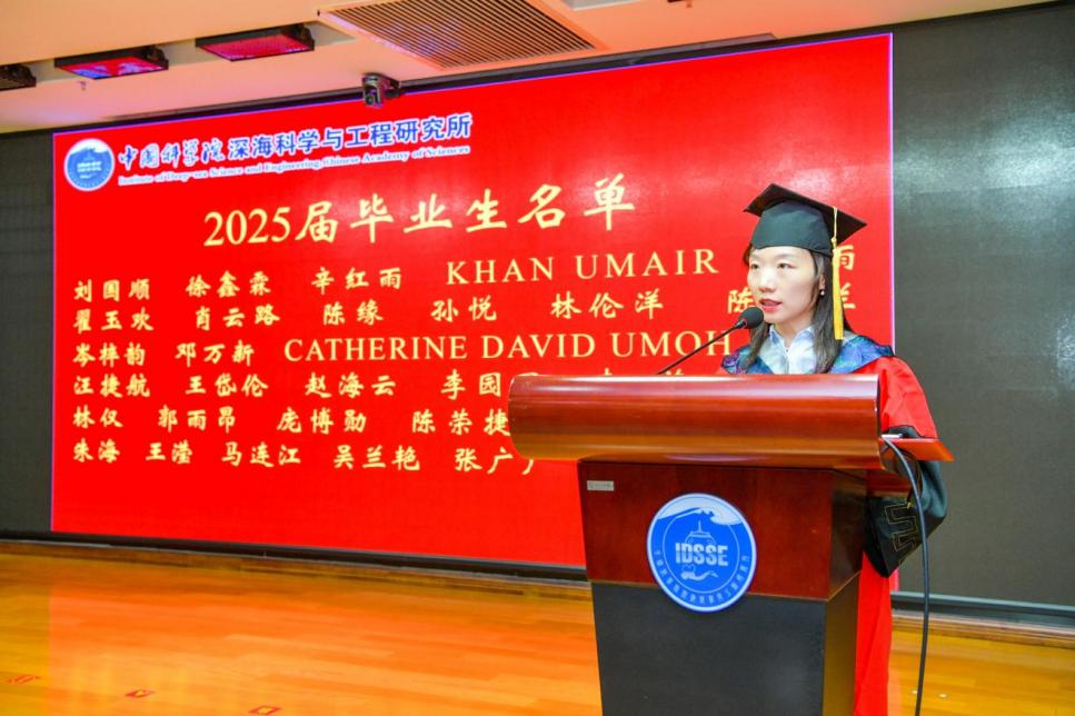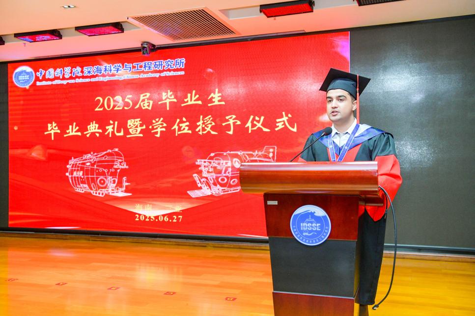 導師代表張海濱的發言飽含深情與期許。博士畢業生代表孫悅、UMAIR KHAN和碩士畢業生代表林僅深情回顧了在深海所的求學歷程,表達了對深海所、導師及同窗的衷心感激,并展望了未來投身深海事業的決心。