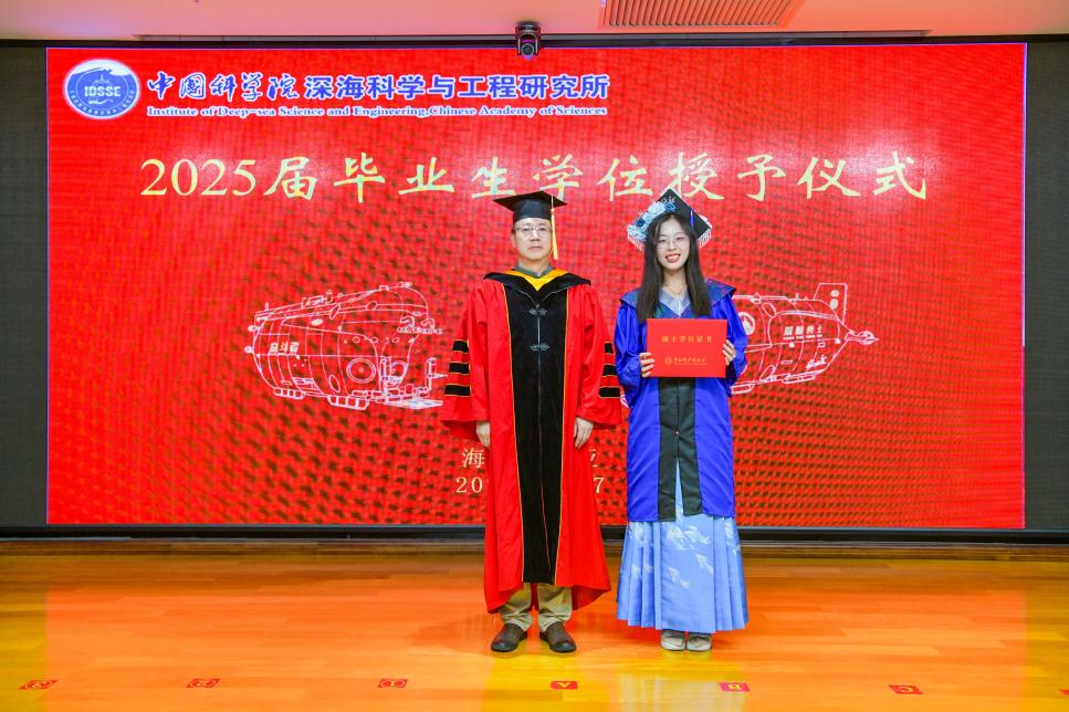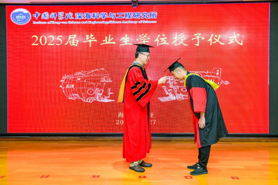 2025627日, 中國科學院深??茖W與工程研究所(以下簡稱“深海所”)2025屆研究生畢業典禮暨2024-2025學年優秀學生表彰大會在1003會議室順利舉行。所領導、學位評定委員會委員、研究生導師及人事教育處老師齊聚一堂,共同歡送34名畢業生。會議由崖州灣園區管理部主任張忠主持。