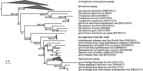 該論文報(bào)道了深海等足類食腐性生物大王具足蟲(Bathynomus sp.)的消化中存在高比例共生支原體,此共生支原體為大王具足蟲適應(yīng)深海的生存環(huán)境提供了獨(dú)特的代謝通路。該支原體是新物種,并首次在深海生物體內(nèi)發(fā)現(xiàn),對(duì)于研究支原體造成廣泛的人畜疾病的原因具有重要的啟示作用。