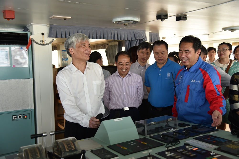 丁仲禮副院長(左一)等領導參觀駕駛艙