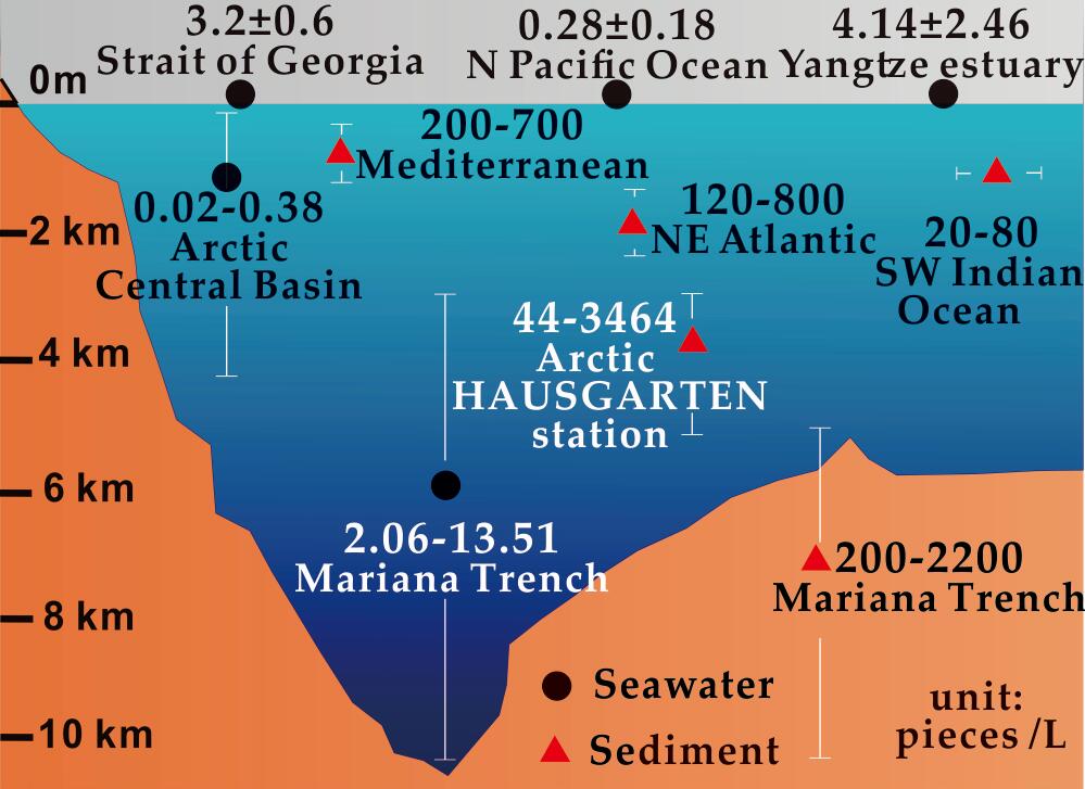 馬里亞納海溝挑戰(zhàn)者深淵與世界其它海域微塑料含量對(duì)比