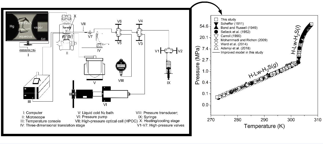 此項研究在線發表于《Journal of Chemical & Engineering Data》(Sun J, Xin Y, Chou I-M, Sun R, and Jiang L*. 2020, Hydrate stability in the H2S–H2O system–visual observations and measurements in a high-pressure optical cell and thermodynamic models)