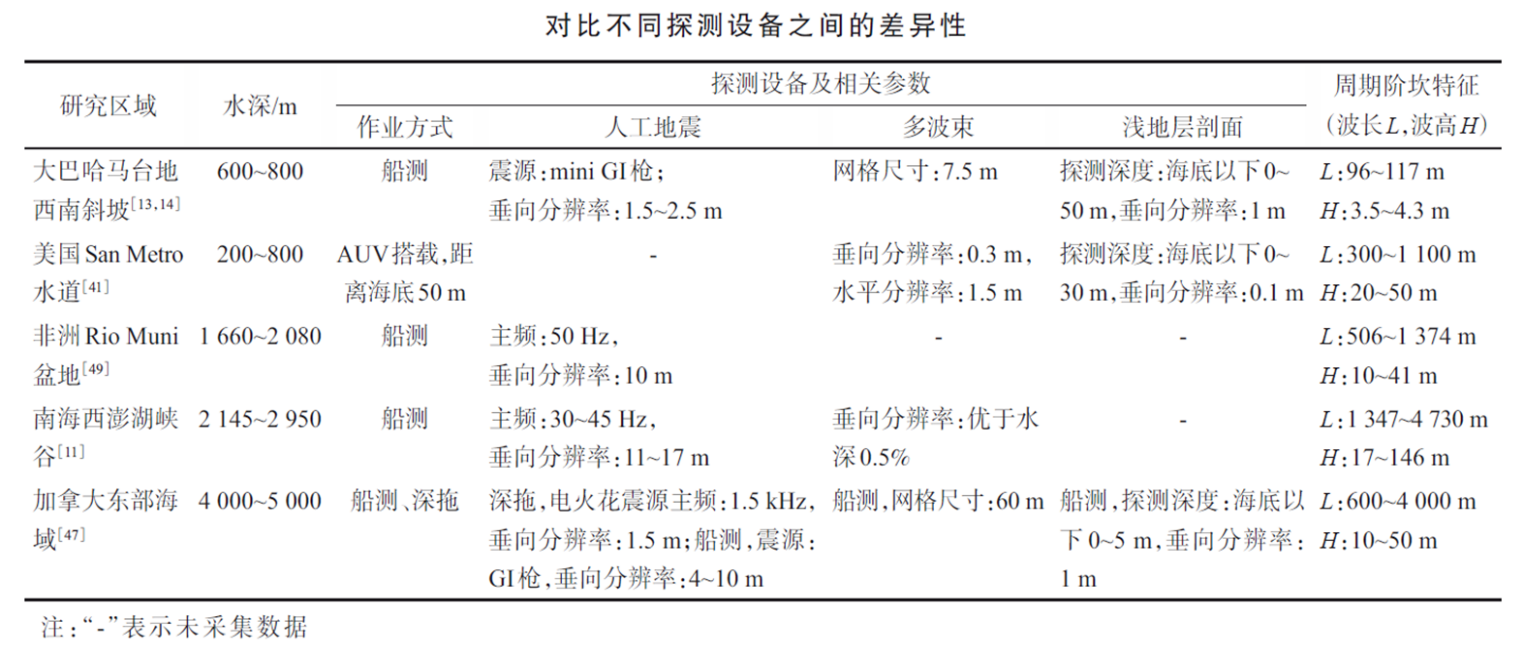 (二) 從沉積環(huán)境、底形形態(tài)、沉積結(jié)構(gòu)、形成機(jī)理和數(shù)值模擬等方面介紹了周期階坎(Cyclic steps)的研究進(jìn)展,探討了不同探測(cè)方法的分辨率問題,給出了周期階坎研究的突破方向。在水深大于500米的區(qū)域,將自主式水下航行器(AUV)和船測(cè)多波束、AUV和船測(cè)淺地層剖面、人工地震數(shù)據(jù)結(jié)合,并通過載人潛水器(HOV)獲取原位數(shù)據(jù),完善周期階坎的三維精細(xì)結(jié)構(gòu)。