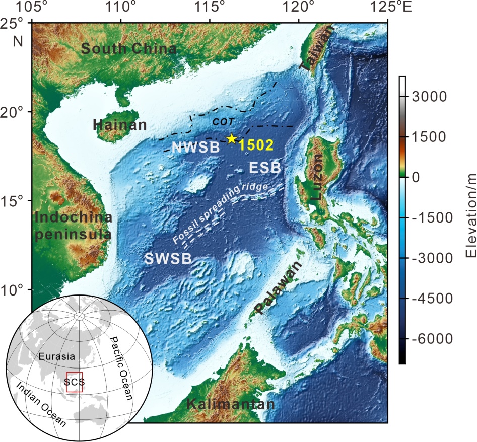 中科院深海所田麗艷研究員(通訊作者)、自然資源部第二海洋研究所丁巍偉研究員(共同通訊作者)及團隊利用國際大洋發現計劃(IODP)368航次在南海初始洋殼區鉆探的U1502B鉆孔(圖1)蝕變玄武巖,首次開展了綠簾石脈的礦物學和原位地球化學研究,約束了南海海底擴張初期海底熱液循環系統的蝕變流體類型和化學組成、綠簾石生長環境特征等信息。