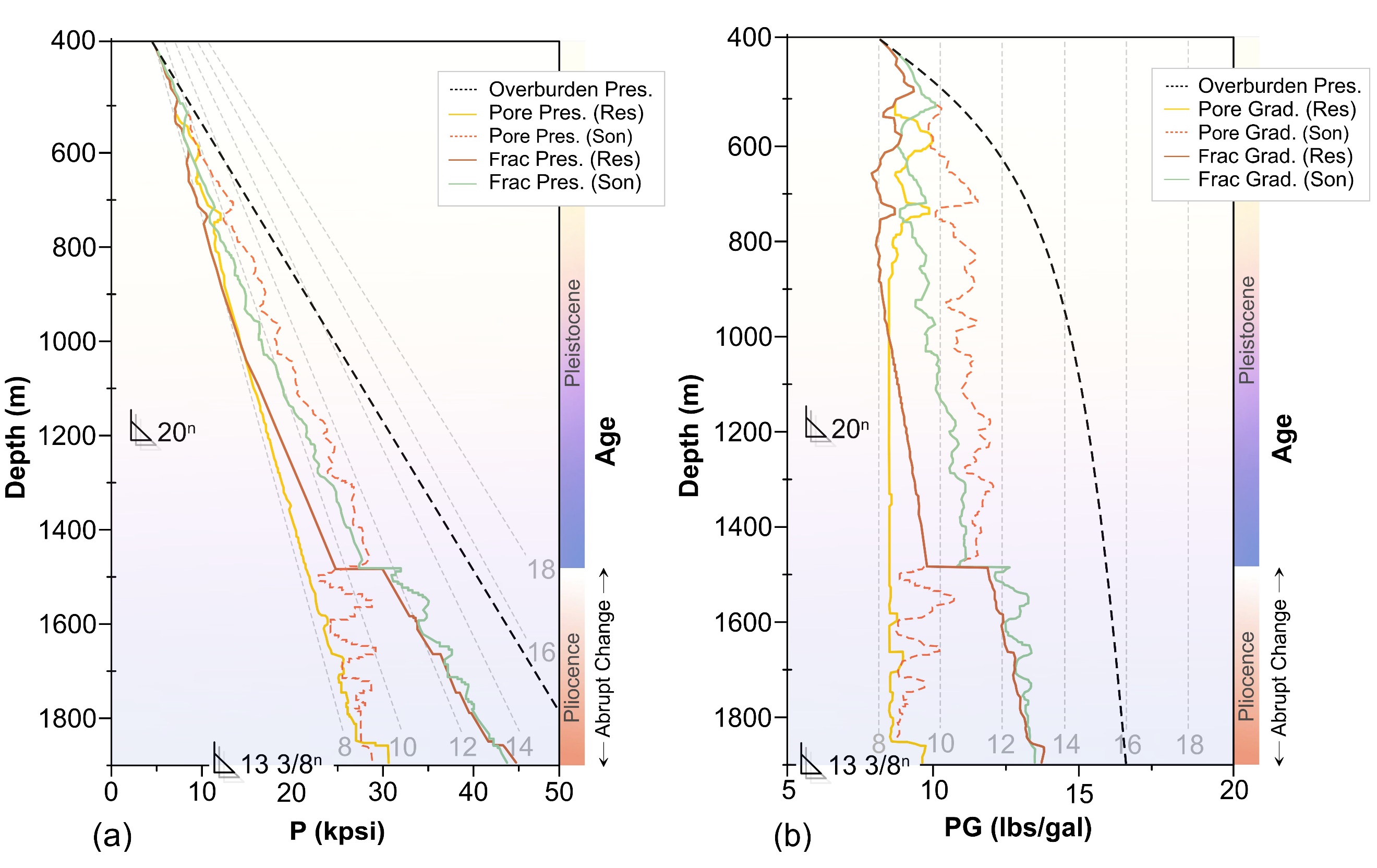 圖4.?綜合覆蓋層和壓力梯度建模顯示了 Makran Subduction Zone 中泥底辟上方垂直應力和孔隙壓力的有效發展