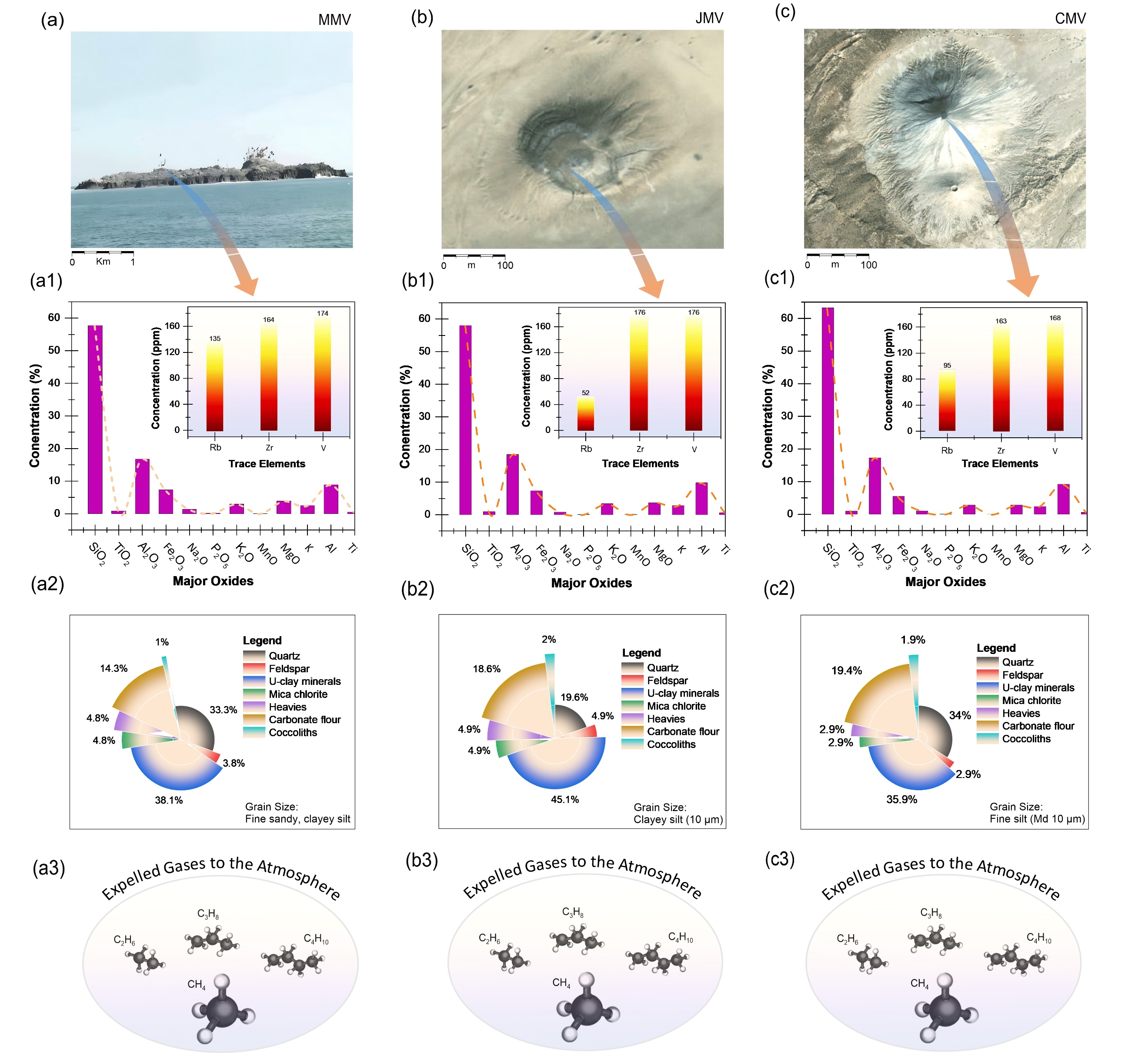 圖5.?Makran Subduction Zone 中三座泥火山噴出的泥角礫巖及氣體的地球化學分析